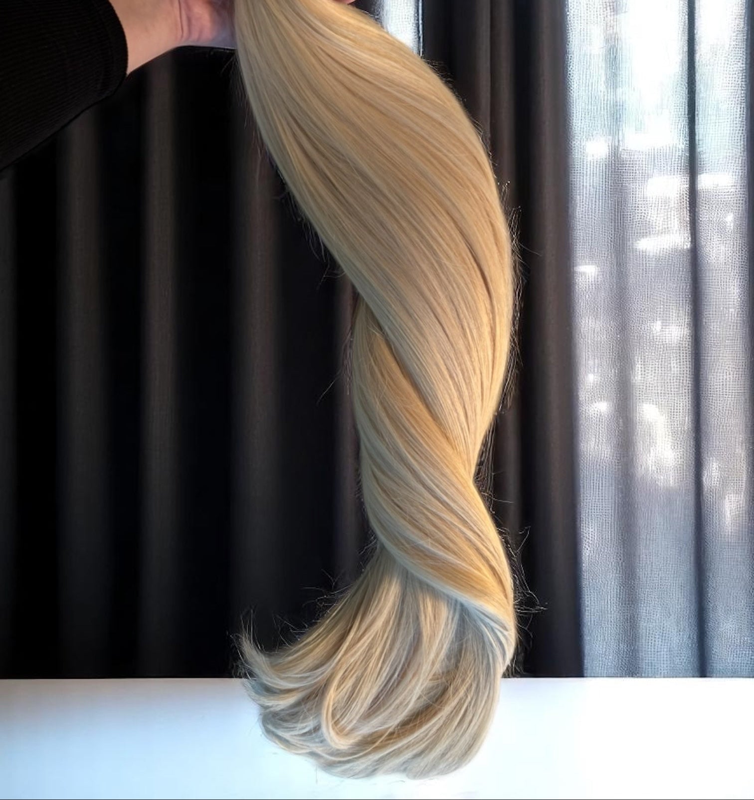Wir verwenden ausschließlich hochwertiges Echthaar, das in einem besonders schonenden Veredelungsprozessbehandelt und in ihre Wunschfarbe eingefärbt wird – für ein Ergebnis von natürlicher Eleganz und harmonischem Glanz.